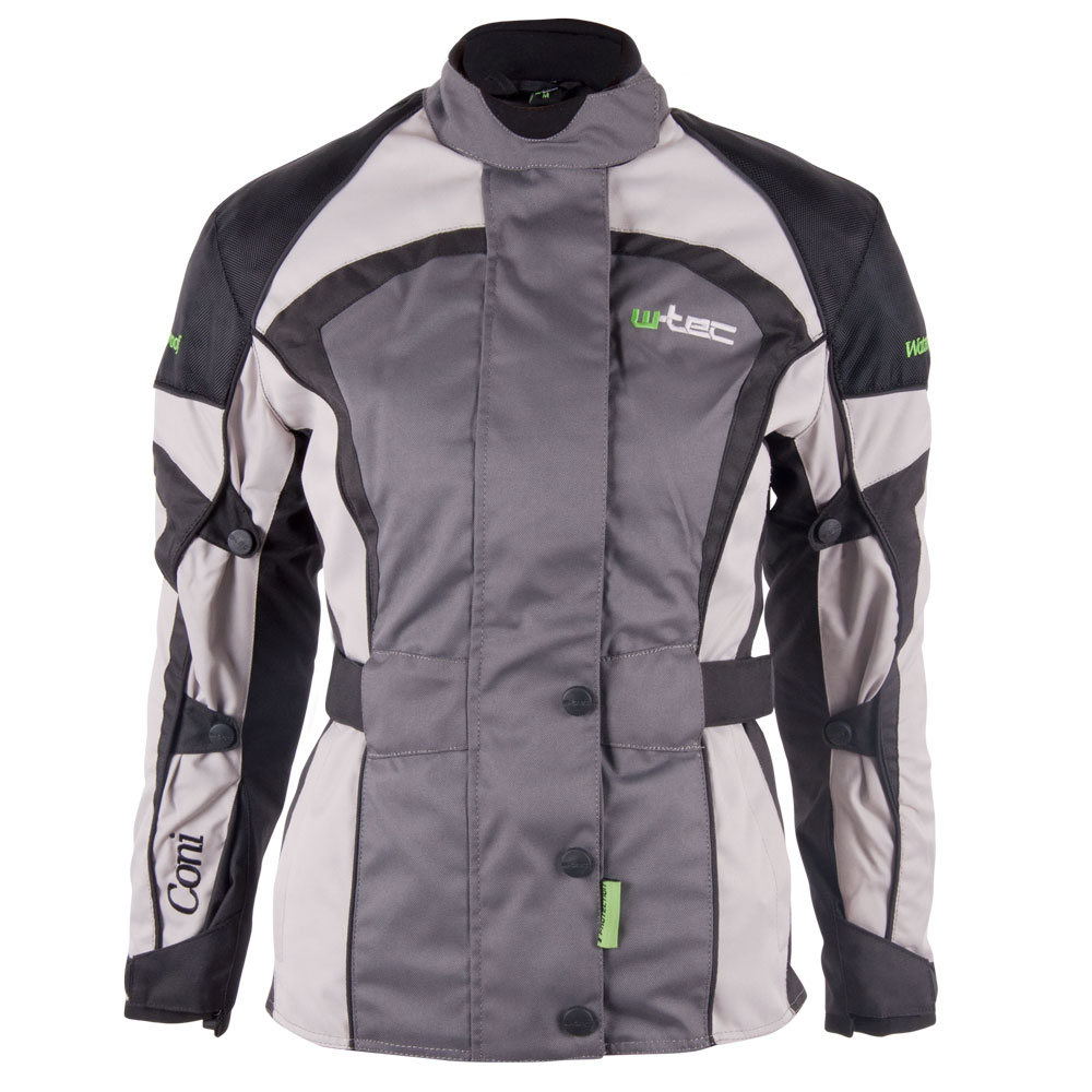Damen Motorradjacke W-TEC Coni besteht aus strapazierfähigem und flexiblem Polyester für hohen Komfort. Für die Sicherheit sorgen CE Protektoren an Schultern, Ellbogen und Rücken, um die Risikopartien zu schützen. Ausgestattet ist sie mit reflektierenden Elementen Visionight für sichere Fahrt bei schlechten Sichtverhältnissen. Das Material mit HeatTex Membran gewährleistet, dass die Jacke atmungsaktiv und zugleich windbeständig ist. Ein Vorteil sind die wasserdichten YKK Reißverschlüsse. Die Jacke disponiert über 1 Innentasche und 2 Außentaschen. Weitenregulierung an Ärmeln, Taille und Hüften sorgt für hohen Komfort. Die Funktionalität ist durch ein Thermofutter ergänzt. Elegantes Design und dezente Farbausführung macht aus der Jacke W-TEC Coni ein beliebtes Kleidungsstück für Frauen, die Fahrspaß lieben.