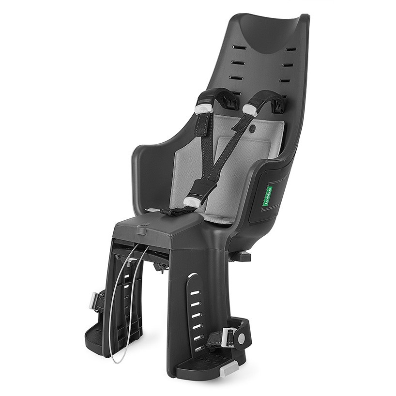 Der Kindersitz hinten Bobike Maxi Exclusive Urban Grey unterscheidet sich in vielen Hinsichten vollkommen von den Wettbewerbsprodukten. Der Sitz verfügt über Schale mit Aussparung, dank dessen das Kind seinen Kopf auch mit dem Helm bequem stützen kann. Die Dreipunkt-Sicherheitsgurte mit massiver Polsterung und Einspannung in die Stütze, sowie die Tritte sind in 5 Positionen einstellbar, wodurch der Fahrrad-Kindersitz für Kinder von verschiedener Größe, mit dem Gewicht von 9 - 22 kg geeignet ist