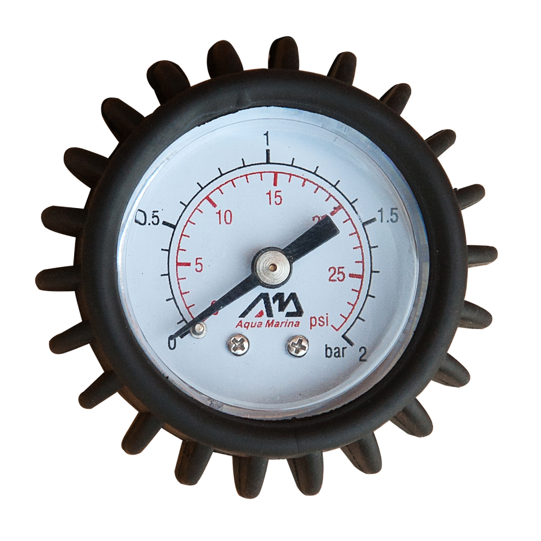 Druckmesser Aqua Marina Jombo kann man bei Hochdruckpumpen Aqua Marina Jombo 23,5" nutzen. Es wird einfach verbunden, direkt am Griff der Pumpe. Disponiert mit einem Druckanzeiger des Drucks bis zu 2 bar, dank welchem Sie immer wissen werden, ob das aufgeblasene Produkt ausreichend aufgeblasen ist. Dank der Oberfläche mit sichtbarer Riffelung ist es standfestiger gegen Beschädigung.