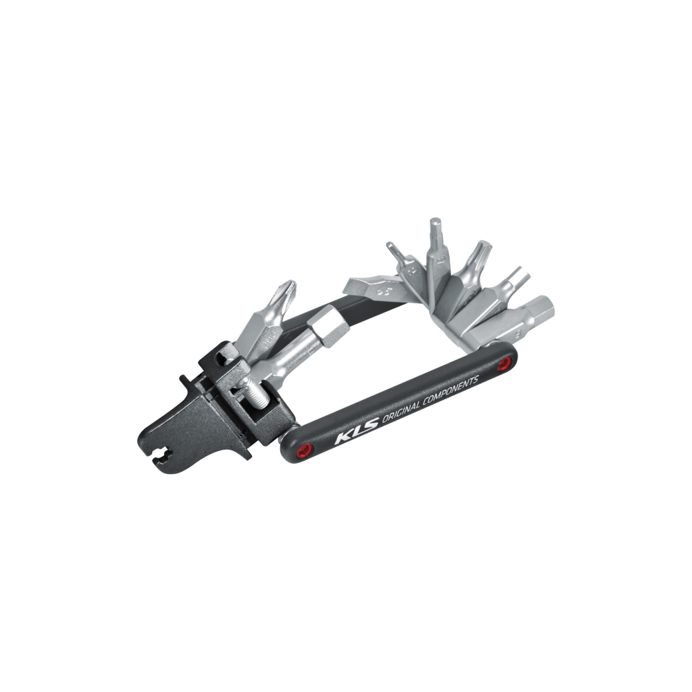 Das Fahrradwerkzeug Kellys Guide ist ein kompaktes Werkzeug mit Kettennietdrücker. Die Schlüssel sind aus hochwertigem Chrom-Vanadium-Stahl (CR-V) hergestellt. Dieses multifunktionale Werkzeug bietet 15 Funktionen an: 2,5mm-Inbusschlüssel, 3mm-Inbusschlüssel, 4mm-Inbusschlüssel, 5mm-Inbusschlüssel, 6mm-Inbusschlüssel, 8mm-Inbusschlüssel, T25 (Torx) - Schraubenzieher für Scheibenbremsen, Flachschraubenzieher, Kreuzschraubenzieher (Philips), Zentrierschlüssel 3,23 / 3,32 / 3,47 / 3,96 mm und Zentrierschlüssel MAVIC. Dank den breiten Möglichkeiten wird das Fahrradwerkzeug Kellys Guide ein unersetzbarer Fahrradhelfer für kleinere Reparaturen und Schraubenanziehen am Fahrrad.