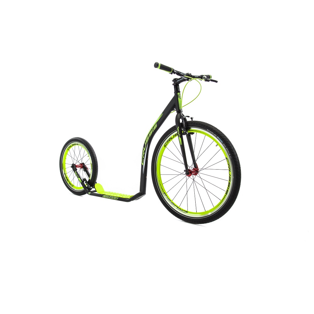 Der Tretroller Crussis Urban 4.2 hat hohe Sportambitionen und ist sowohl für die Hobby-Tretrollerläufer als auch für sportlich begeisterten Tretrollerläufer bestimmt. Der Urban-Tretroller ist ein hochwertiger Sport-Tretroller und kein Spielzeug! Die Fahrt mit ihm ist sowohl ein Spaß, als auch eine physische und geistliche Entspannung. Der Vorteil der Tretroller CRUSSIS der Reihe URBAN ist eine hohe Steifigkeit der patentierten Rahmenlösung, dank der die Energie bei dem Abstoß nicht verlorengeht, sondern mit einem großen Wirkungsgrad in die direkte Fahrrichtung übertragen wird. Der kurze Radabstand stellt die großartigen Fahreigenschaften und die perfekte Wendigkeit des Tretrollers sicher. Der Tretroller ist mit Naben mit industriellen Lagern bestückt, welche beim Fahren einen Mindestwiderstand und ausgezeichnete Schwungkraft haben. Die Reifen SCHWALBE BIG APPLE mit einem sehr niedrigen Laufwiderstand haben perfekte Fahreigenschaften sowohl auf den Fahrstraßen, als auch im leichten Gelände, wo sie die ausgewählte Spur gut führen.