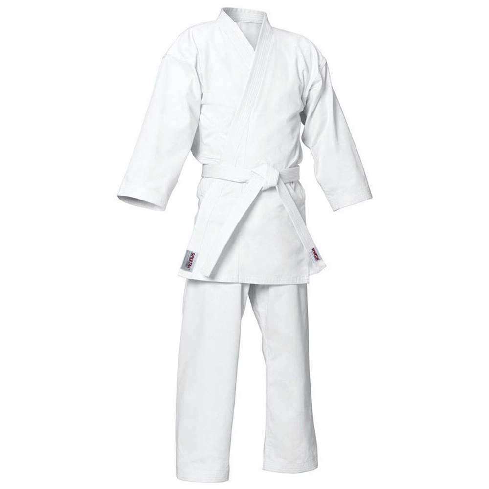 Leichter Kimono Spartan Karate mit traditioneller japanischer Webung. Kimono klassischen Schnitts für Selbstverteidigung. Jacke traditionell geschnitten. Hose mit Schnürbund. Zum Packungsumfang gehört ein weißer Gurt.