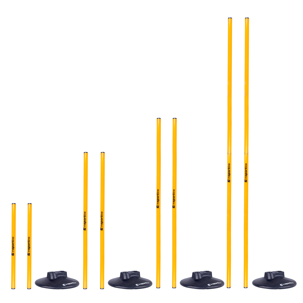 Das inSPORTline SL SET aus Ständern und Slalomstöcken erlaubt Ihnen, komplette Slalombahn zusammen zu bauen. Die Stöcke werden leicht in die Ständer eingelegt, und die Bahn ist einsatzbereit. Die Slalombahn ist ein hervorragendes Mittel zur Verbesserung der Kondition, der Genauigkeit und der Bewegungskoordination. Sie wird vor allem von den Fußball- oder Basketball-Trainern beim Training des Dribblings geschätzt, und dies sowohl auf der Ebene der Freizeitsportler, als auch auf der Profi Ebene. Die Ständer können sowohl im Exterieur, als auch im Interieur, in einer Halle auf künstlichen Oberflächen verwendet werden. Man braucht nichts in den Boden einzubauen. Das Gewicht von 1,4 kg und die rutschfeste Gummioberfläche sorgen für sichere Absicherung der Stöcke an ihren Stellen. Jeder der Ständer verfügt über drei Öffnungen für den Stock, wobei jede davon in eine andere Richtung gerichtet ist und auf dieser Weise mehrere Varianten fürs Training bietet. Neben dem klassischen Slalom kann daher das Training auch zum Beispiel in der Form des Durchspringens zwischen den eingelegten Stöcken erfolgen. Die Stöcke selbst sind leicht, jedoch fest. Aufgrund dieser Tatsache droht keine Verletzungsgefahr beim Anlaufen dagegen. Das inSPORTline SL SET aus Ständern und Slalomstöcken ist eine ideale Ergänzung der Trainingseinheit, und es hilft die Flinkheit und die Explosionskraft zu entwickeln.