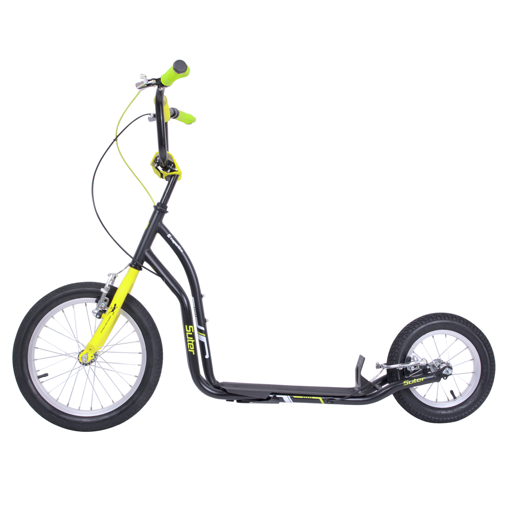 Der inSPORTline Suter SE Roller ist ein Roller mit vielseitigen Einsatzmöglichkeiten. Aufblasbare 16“ und 12“ Reifen sind für annehmbare Geschwindigkeit beim Reisen groß genug, und zugleich sind sie noch ziemlich klein für gute Wendigkeit, einfaches Tragen und Lagerung. Der Roller kann sowohl auf den Asphaltflächen in der Stadt oder den Radwegen, als auch zum Beispiel auf den Feldwegen und im leichten Terrain genutzt werden. Der gesamte Roller ist aufgrund seiner Größe, seiner Länge und seines höhenverstellbaren Lenkers für Erwachsene und Junioren geeignet (ab der Körperhöhe von ca. 145 cm).