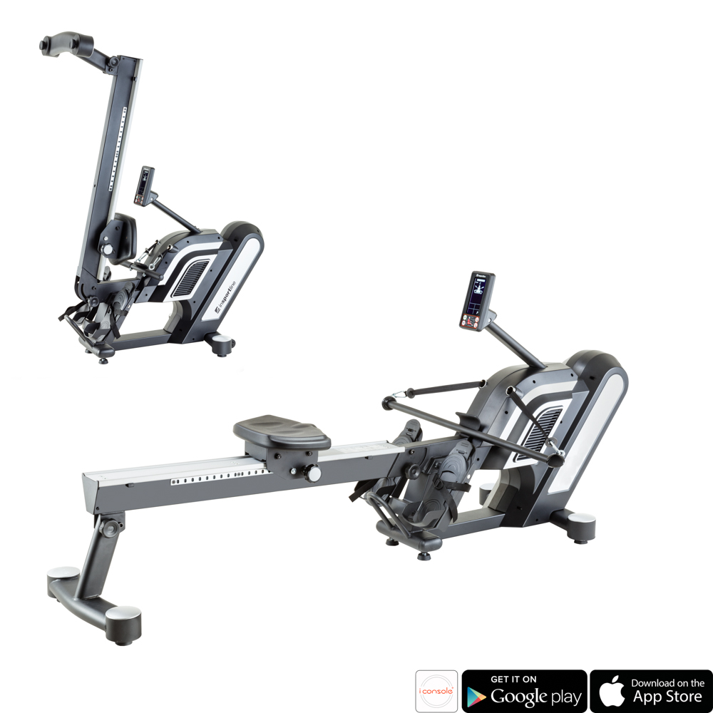 inSPORTline YAKABA Rudertrainer ist ein Profi-Gerät zum Training für den ganzen Körper. Die robuste Konstruktion kann eine Dauerbelastung des Benutzers bis zu einem Gewicht von 180 kg ertragen. Ein magnetisches Bremssystem sorgt für einen geräuscharmen und problemlosen Betrieb. Das Gerät wird durch einen eigenen Stromgenerator angetrieben, wodurch Stromkabel nicht benötigt werden. Der Trainer verfügt über ein praktisches klappbares System zum Platz sparen bei Nichtbenutzung sowie über Transportrollen für eine einfache Handhabung beim bewegen und als Ausgleichssystem von Fußbodenunebenheiten.