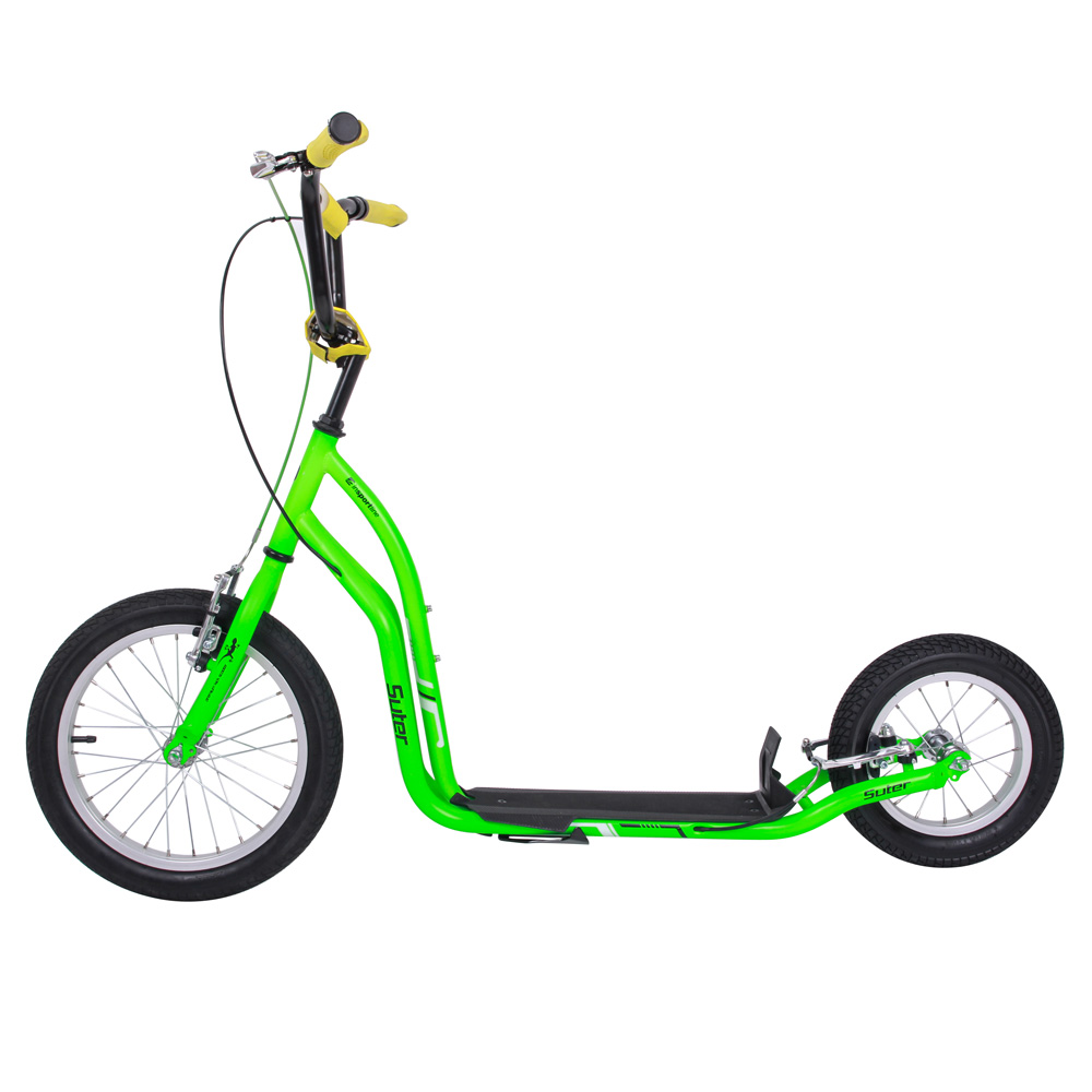 Tretroller inSPORTline Suter SE ist ein Roller für vielseitigen Einsatz. Aufblasbare Reifen in Maßen von 16" und 12" sind ausreichend groß, um schnell zu reisen, und noch gerade klein genug für gute Wendigkeit. Einsetzen kann man den Roller auf Asphaltstraßen in der Stadt und auf Radwegen, sowie auf Feldstraßen und im leichten Terrain. Der Roller eignet sich dank seiner Größe, Länge und dem höhenverstellbaren Lenker für Erwachsene und Kinder (von ca. 145 cm Körperhöhe).