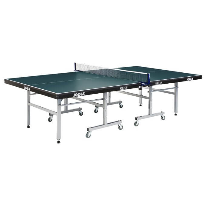 Der Joola World Cup TT-Tisch ist ein besonders hochwertiger Tischtennistisch mit einer Oberfläche, wie sie bei Weltturnieren benutzt wird. Die "schnelle" 22mm dicke Platte ist mit einer speziellen Oberflächenbeschichtung behandelt, während der 50mm dicke Stahlrahmen für die Stabilität sorgt. Den Auf- und Abbau schafft auch ein Kind und dank der doppelten Kippsicherung ist auch eine sichere Arretierung gewährleistet.