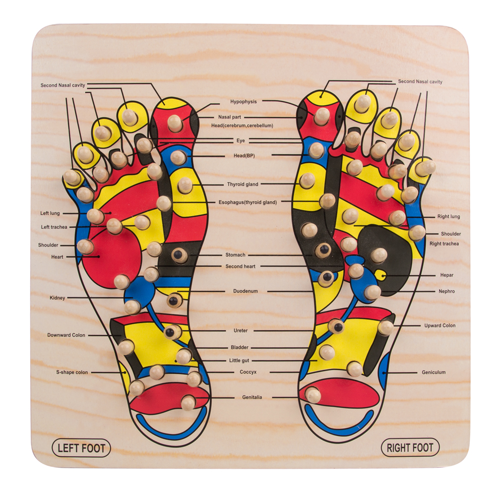 Matte aus Holz mit flexiblen Akupressur-Stiften, dargestellte Akupressurzonen, Universalgröße. mehr