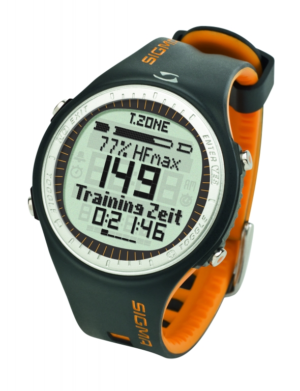 SIGMA PC 25.10 Sporttester ist eine Neuheit vom deutschen Hersteller Sigma. Der Sporttester verfügt über ein großes und übersichtliches LCD Display mit blauer Hintergrundbeleuchtung und vielen Funktionen. Zu den Grundfunktionen gehören Stoppuhr, Timer, Wecker, Pulsfrequenzüberwachung und einstellbare Trainingsprogramme wie Kalorienverbrauch, individuelle oder Fitness Programme. Ein Bestandteil des Sporttesters Sigma PC 25.10 ist ein komfortabler Brustgurt mit einer einfachen Befestigung. Sporttester wird in zwei Farbausführungen geliefert – orange und grau.