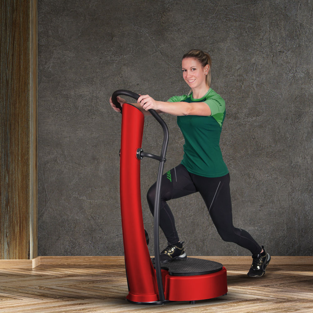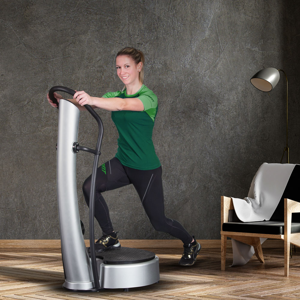 Vertikale Vibrationen, Einstellung der Vibrationsintensität, größere Übungsfläche, Handgriffe eng aneinander, geräuscharmer Gang. mehr