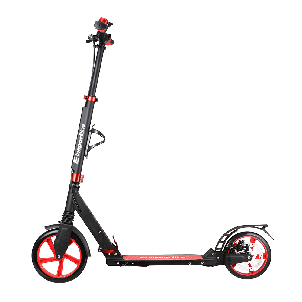 Der inSPORTline Discola Scooter ist mit einer hocheffizienten Scheibenbremse am Hinterrad ausgestattet und besteht aus robustem und dennoch leichtem Aluminium. Die Größe ist sowohl für Jugendliche als auch für Erwachsene geeignet. Er ist mit einem intuitiven Faltmechanismus ausgestattet, der es ermöglicht, den Scooter einschließlich des Lenkers in wenigen Augenblicken auf eine Größe zu verkleinern, die bequem in der Hand getragen werden kann, in öffentlichen Verkehrsmitteln nicht im Weg ist und problemlos in den Kofferraum eines Autos passt.