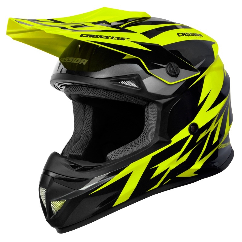Der Cassida Cross Cup Zwei Motorradhelme mit witziger Grafik, einem praktischen verstellbaren Schild und einem aggressiven Design bieten eine Vielzahl funktionaler Funktionen. Der erste Vorteil ist eine robuste Schale aus Polycarbonat. Das atmungsaktive Innere kann entfernt und gewaschen werden. Die Befestigung des Helms erfolgt mit dem sichersten Klassiker - Doppel-D-Ringen. Die Rückseite des Helms ist für die Verwendung mit dem Gebärmutterhalskrebsschutz geformt. Eine Besonderheit ist der in die vorderen Luftdüsen integrierte Kohlefilter, der es Ihnen ermöglicht, so saubere Luft wie möglich zu atmen.