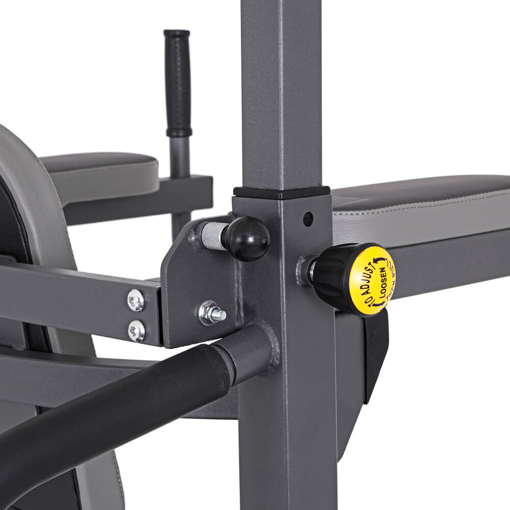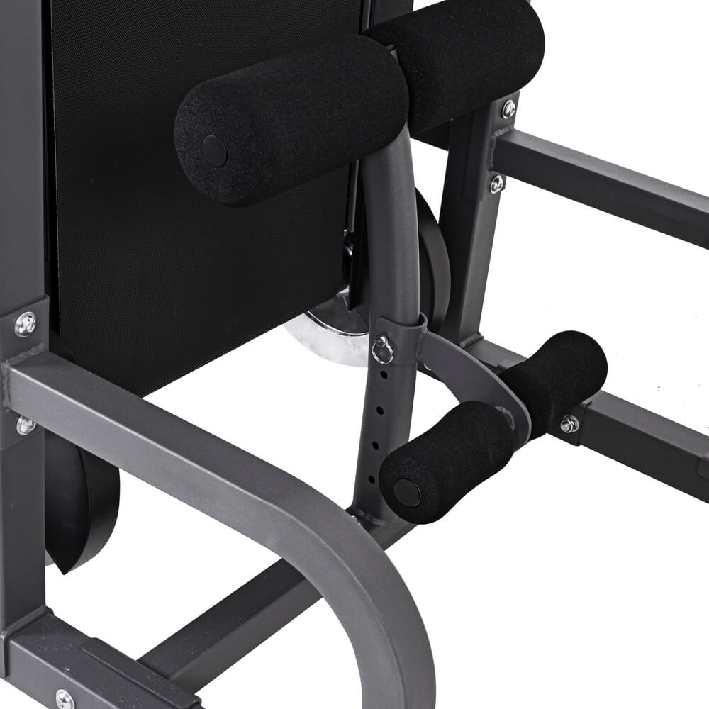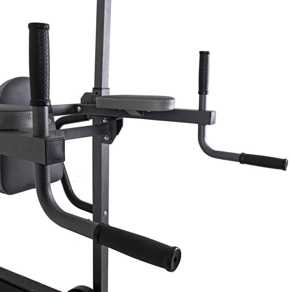 Ein weiteres interessantes Merkmal sind die Parallelstangen, ebenfalls mit zwei verschiedenen Griffen und gepolsterten Armlehnen. Auf ihnen können Sie hauptsächlich die Brustmuskeln stärken, aber es erreicht auch die Muskeln des Arms, des Deltamuskels und des Abdomens.