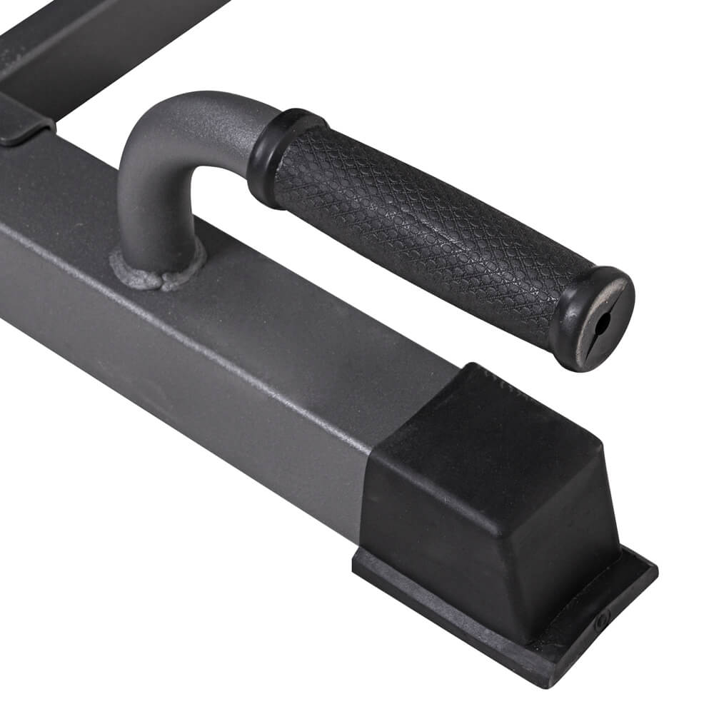 Zusätzlich zur Anpassung der Höhe der horizontalen Stange haben wir noch weitere Funktionen! Die Parallelstangen und das Laufband können nach Belieben heruntergeklappt und verriegelt werden. Da inSPORTline Tong auf nahezu jeder Seite verwendet werden kann, müssen Sie die Konstruktion möglicherweise von Zeit zu Zeit ein wenig verschieben. Bei einem normalen Reck wäre das ein Problem, aber dank der Räder an der Unterseite des Laufbands kann der Rahmen im zusammengeklappten Zustand umgeklappt und relativ einfach an den gewünschten Ort transportiert werden.