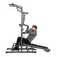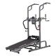 Die nicht motorisierte Lauffläche der Maschine eignet sich zum Laufen und Gehen, je nachdem, wie stark Sie sich anlehnen. Sie können es sogar in 3 verschiedenen Positionen einstellen. Auf der gegenüberliegenden Seite finden Sie Barren mit Polsterung und zwei Griffpositionen. Über ihnen befindet sich eine horizontale Stange (auch mit 2 verschiedenen Griffen) mit einstellbarer Höhe. Aber das ist noch nicht alles! Das geneigte Profil kann dank der gepolsterten Armlehnen an der Unterseite als geneigte Bank verwendet werden! Außerdem können Sie die Handkurbeln verwenden, wenn Sie das Laufband herunterklappen.
