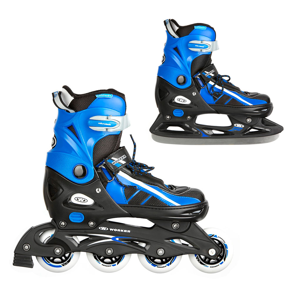 Universale Schlitt-/Inliner WORKER Lumine 2in1 mit Möglichkeit des Austausches des Stahlmessers gegen den verstärkten Rahmen mit Glasfaser für das Inline Skaten. Es handelt sich um eine der universellsten Schlitt-/Inliner 2in1 auf dem Markt dank dem patentierten System der schnell verstellbaren Größe, abnehmbare Bremse am rechten Inliner und hochwertige Lager ABEC 5 Carbon, die Technologie Safety Ankle hält den Knöchel fest und in der richtigen Lage. Die Schlitt-/Inliner WORKER Lumine 2in1 haben ein leichtes Anziehen, Schnürung und eine beidseitige Sicherheitsschnalle MicroLock. Abnehmbare Bremse am rechten Inliner und hochwertige Lager ABEC 5 Carbon. Das System Memory Fit sichert die Anpassung des Innenfußbetts an den Fuß des Benutzers. Geeignet für das Freizeit- und Konditionsskaten.