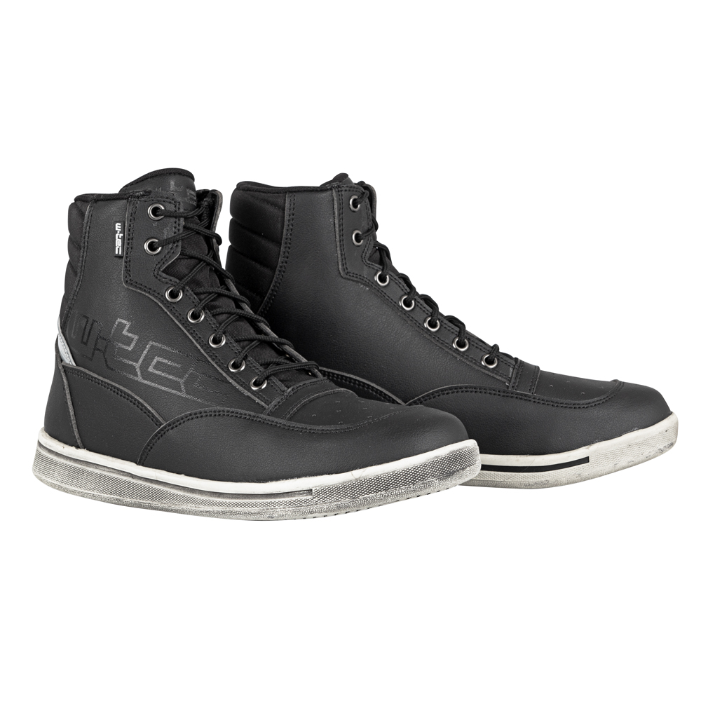 Einfaches Anziehen - typisch für diese Schnürung mit Schnürsenkeln. Die verwendeten Doppelnähte unterstützen die Festigkeit dieses Schuhs und erhöhen die Haltbarkeit. Die Sohlen sind rutschfest und ölbeständig, dank des weichen Auftritts können Sie bequem durch die Stadt laufen. W-TEC Culabus Motorradschuhe sind ein großartiger Partner für Ihre Motorrad- und Offroad-Touren.