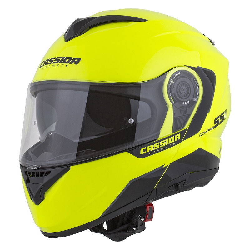 Der Cassida Compress 2.0 Refraction Motorradhelm hat eine sichere Polycarbonatschale für Stoßfestigkeit. Mit integrierter versenkbarer Sonnenblende sorgt sie für gute Sichtbarkeit auch bei starker Sonneneinstrahlung. Gleichzeitig wird auch das Vorhandensein von Pinlock®- Folie, die das Beschlagen des Plexiglases minimiert, gefallen.