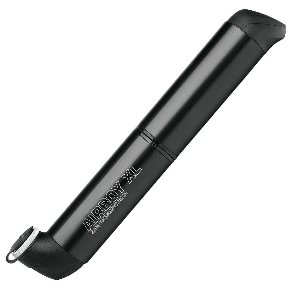 Die SKS Airboy XL Handradpumpe ist eine Minipumpe mit tollem Design und innovativer Technologie. Das einzigartige Zweikammer-Aufblassystem gewährleistet eine hohe Kapazität bei kompakter Größe. Dank diesem können Sie die Pumpe sogar in Ihrer Tasche von dem Fahrradtrikot verstecken. Es wiegt nur 90 Gramm und hat einen Durchmesser von 19 mm. Der SKS Airboy XL kann für Auto- (AV), Rohr- (FV) und Dunlop- (DV) Ventile verwendet werden. Griff mit weichem ergonomischem Endstück für komfortables und effizientes Pumpen.