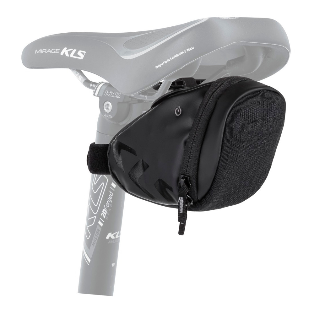 Kellys Slopper Lightning bietet einen praktischen Stauraum und ein ungewöhnliches reflektierendes Element in einem! Die Rückseite der Tasche besteht aus Leuchtfasern, die mit wiederaufladbaren USB-Batterien betrieben werden. Batterien halten mit einer einzigen Ladung bis zu 4 Stunden. Der Rest der Tasche besteht aus einer hochwertigen wasserfesten Plane. Die Tasche wird mit dem patentierten T-Halter festgeklemmt, sodass Sie dazu kein Werkzeug benötigen.