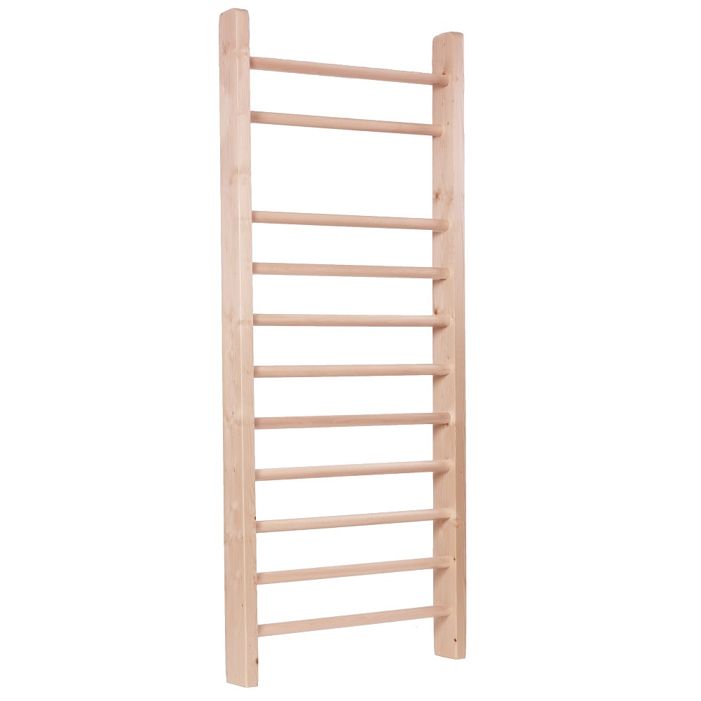Lackierte Sprossenwand, schlichtes Design, hochwertiges Buchen- und Kiefernholz, Befestigung an der Wand, einfache Montage, einfache Pflege. mehr