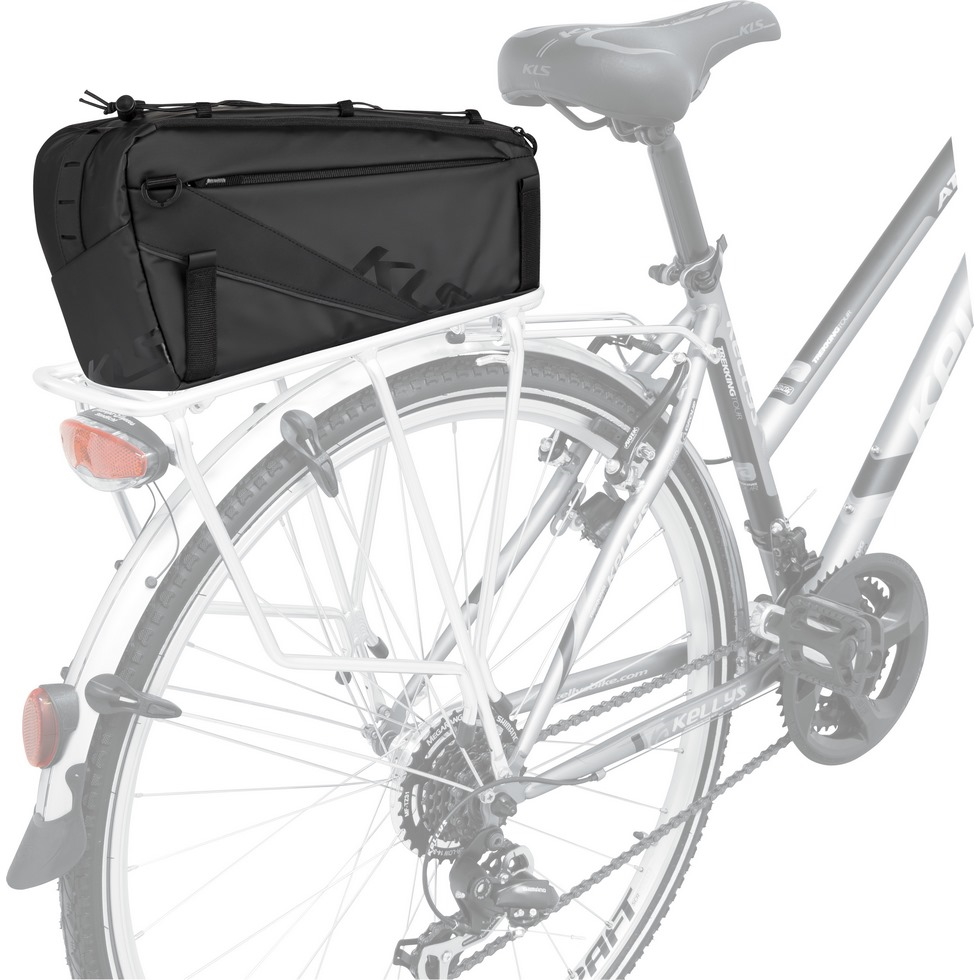 Die hintere Tragetasche Kellys Space 10 besteht aus strapazierfähigem und wasserdichtem Planenmaterial. Die Tasche hat ein Hauptteil und zwei Seitentaschen für schnellen Zugriff. Das Sechs-Punkt-Klettverschlusssystem ermöglicht ein schnelles Festklemmen der meisten Arten von Heckträgern. Die Kellys Space 10-Tasche hat ein beachtliches Volumen von 10 Litern und einen abnehmbaren Schultergurt, der auch außerhalb des Fahrrads problemlos getragen werden kann.