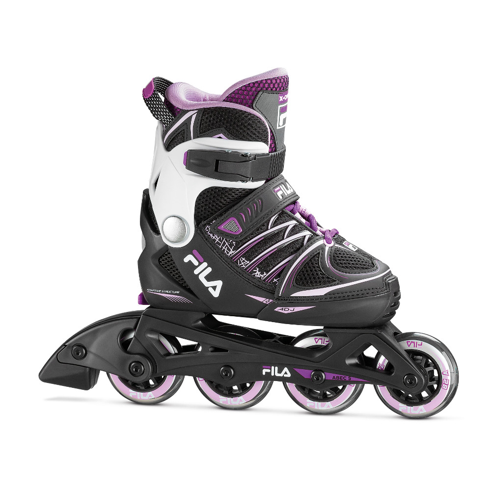 FILA X-One G Kinderrollschuhe wachsen mit Ihrem Kind! Die Länge der Innensohle kann leicht im Bereich von vier Größen eingestellt werden, wodurch Sie nicht nur Zeit sparen, sondern auch Geld, das Sie sonst für drei weitere Paar Schlittschuhe ausgeben würden. Sie können die Größe auch dann anpassen, wenn Sie sie am Bein haben, damit Sie immer maximalen Komfort erreichen. Die Skates sind auf einem haltbaren, leichten Rahmen aus gehärtetem Kunststoff aufgebaut. Das Material des Schuhs passt sich der Form des Fußes an und befestigt ihn fest. Die weiche Innenpolsterung verhindert dann blaue Flecken. Und das farbenfrohe Design wird sicher jedes Mädchen ansprechen. Die FILA X-One G Kinderrollschuhe sind, kurz gesagt, ideale Anfängerschlittschuhe für alle zukünftigen Skater.
