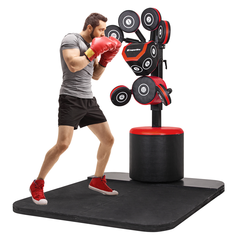 Obwohl der Boxtrainer in SPORTline Boxheist Go wie eine Riesenspinne oder ein Tintenfisch aussieht, ist er ein beeindruckender Boxtrainer. Auf diese Weise können Sie nicht nur Ihre Schlagtechnik üben, sondern auch Ihre Fitness und Ausdauer verbessern. Mit den 12 speziell positionierten gepolsterten Zielen können Sie bequem von zu Hause aus Oberschnitte, Haken und direkte Schläge sowie alle Arten von Kombinationen üben. Er hilft Ihnen auch dabei, die richtige Körperhaltung beizubehalten, was beim Boxen äußerst wichtig ist. Das feste Material absorbiert Ihre Schläge und beugt Verletzungen vor. Die robuste Konstruktion kann an Ihre Körpergröße angepasst werden. Die Ziele haben weiße Zahlen, sodass Sie wissen, welche Sie treffen müssen, um einen bestimmten Schlag zu üben.