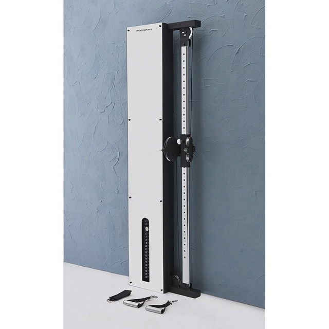 Die verstellbare Kabelmaschine Body Craft SPDL M ist eine elegante Lösung für Ihr Home-Fitnessstudio, auch wenn Sie wenig Platz haben! Dank seines unglaublich schmalen Profils können Sie die Maschine praktisch überall aufstellen, da sie fast keinen Platz einnimmt. Das System besteht aus zwei verbundenen Umlenkrollen , die um 180 Grad gedreht und auf 32 verschiedene Höhen eingestellt werden können und so Ihre Übungsmöglichkeiten erweitern.