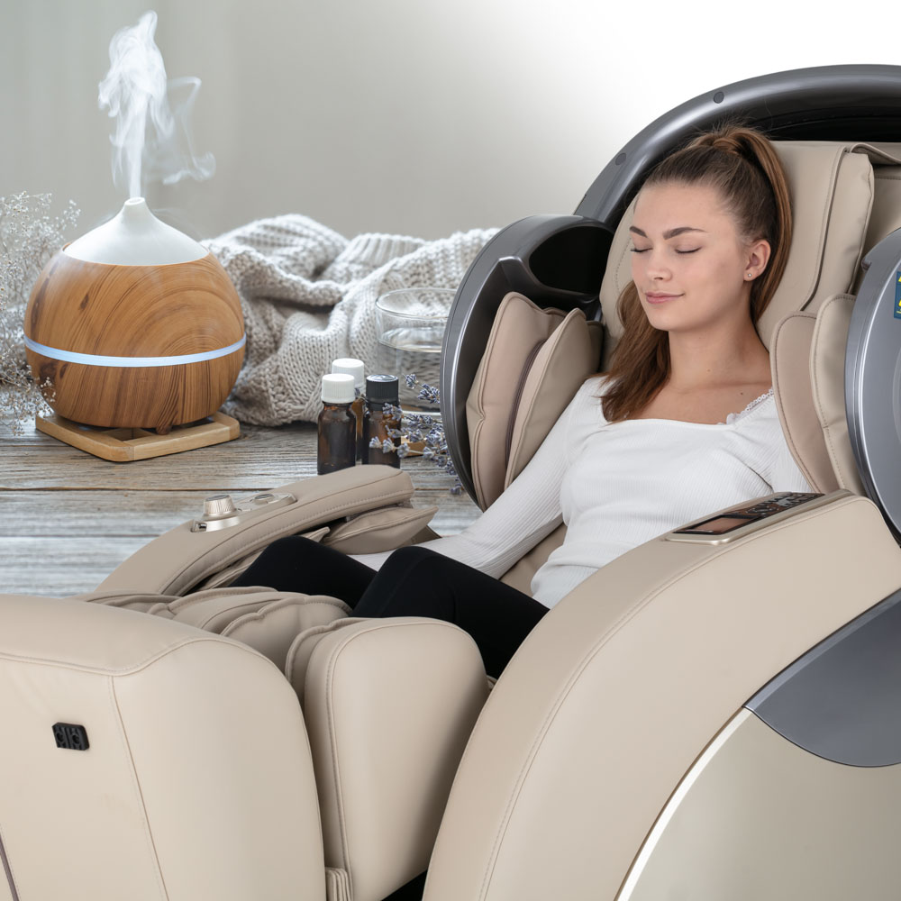 Ein bequemer, kraftvoller und leicht verstellbarer Sessel, der Ihnen neben einer luxuriösen Massage auch eine Aroma- und Lichttherapie bietet - und ein musikalisches Erlebnis! mehr