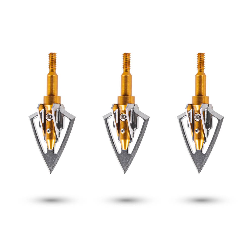 Doppelt gegenüberliegende Kohlenstoffstahlklingen für Pfeile mit Schraubspitze. Im 3er-Set mehr