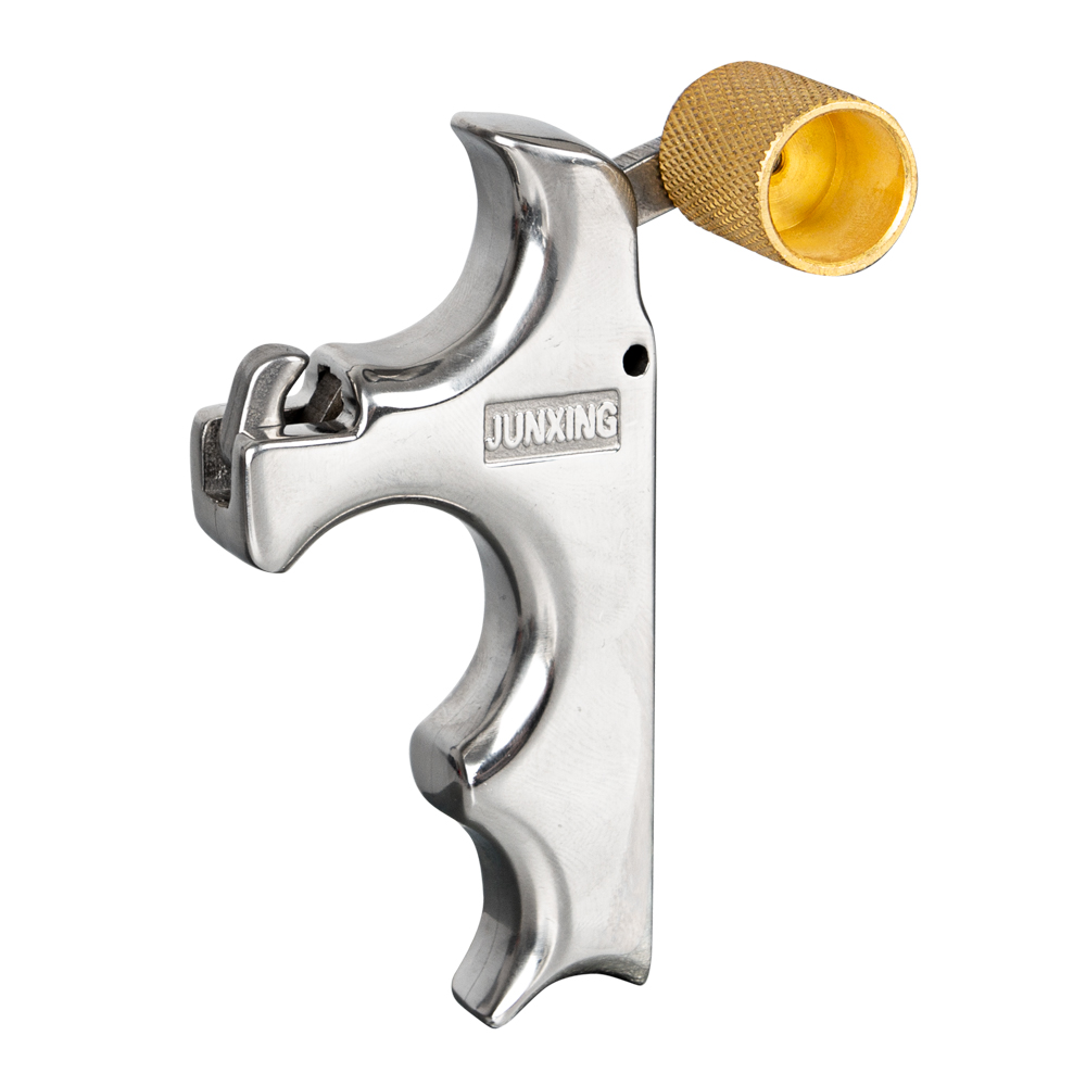 Der inSPORTline Reltu Daumenabzug ist ein großartiges Werkzeug für genaues Zielen mit starken Bögen! Der Griff aus massivem Edelstahl liegt dank der Fingerausschnitte sehr gut in der Hand. Der Abzug selbst ist mit einer rutschfesten Rändelung für perfekte Schusskontrolle ausgestattet. Die Position des Daumenauslösers ist dann für Rechtshänder geeignet – also für diejenigen, die mit der rechten Hand die Sehne spannen. Der Haken ist ideal für D-Loop-Saitenösen und lässt sich leicht und reibungslos lösen. Wenn Sie einen Bogen mit hoher Zugkraft kaufen, achten Sie darauf, auch eine Saitenfreigabe zu wählen.