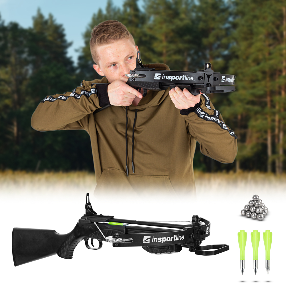 Die inSPORTline Pepeljuga 50 lbs Armbrust ist eine leichte, mittelgroße Rollenarmbrust, die für das Freizeit- und Sportschießen entwickelt wurde. Es bietet die Möglichkeit, nicht nur Pfeile, sondern auch Stahlkugeln zu schießen, und dank dessen erhalten Sie eine weitere interessante Verwendung. Oberhalb der Führungsschiene für Munition befindet sich ein Visier, das Sie vertikal verstellen können und so genauere Eingriffe erzielen.
