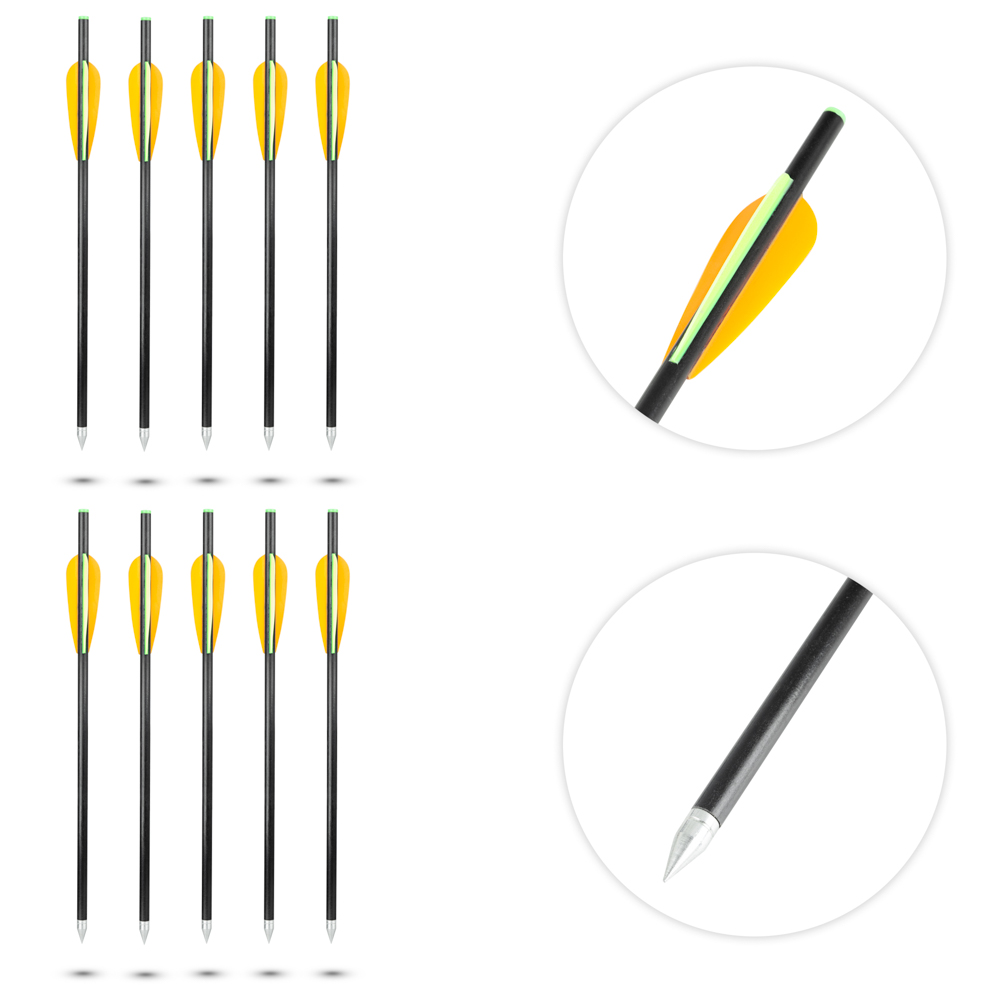 Ein Satz von 10 Ersatzpfeilen mit mittlerer Länge und Zielspitzen, geeignet für Freizeit- oder Sportarmbrustschießen. mehr