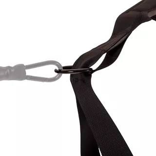 Die Schultergurte sind weich gepolstert und bleiben während des Trainings bequem an Ort und Stelle. Der Brustgurt ist größenverstellbar und wird mit einer Kunststoffschnalle befestigt. Auf der Rückseite befindet sich eine Stahlöse zum Anbringen eines Expanders oder eines Widerstandsseils. Dank dieses besonderen Helfers werden Sie die Grenzen Ihres Trainings noch ein Stück weiter verschieben.
