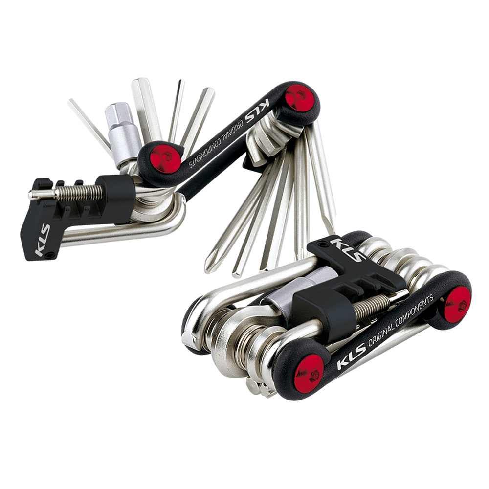 Das KELLYS SIMPLER Fahrradwerkzeug könnte ein sehr nützlicher Helfer bei der Fahrt auf dem Fahrrad werden, Niedriges Gewicht, hoch widerstandsfähiger Chrom-Vanadium Stahlmaterial und attraktives Design sind die Eigenschaften, die das KELLYS SIMPLER Fahrradwerkzeug bietet, Das Werkzeug beinhaltet 7 Sechskantstiftschlüssel (2 mm, 2,5 mm, 3 mm, 4 mm, 5 mm, 6mm, 8mm), Schraubenzieher für die Scheiben von den Plattenbremsen, Kreuzschraubenzieher und Flachschraubenzieher,