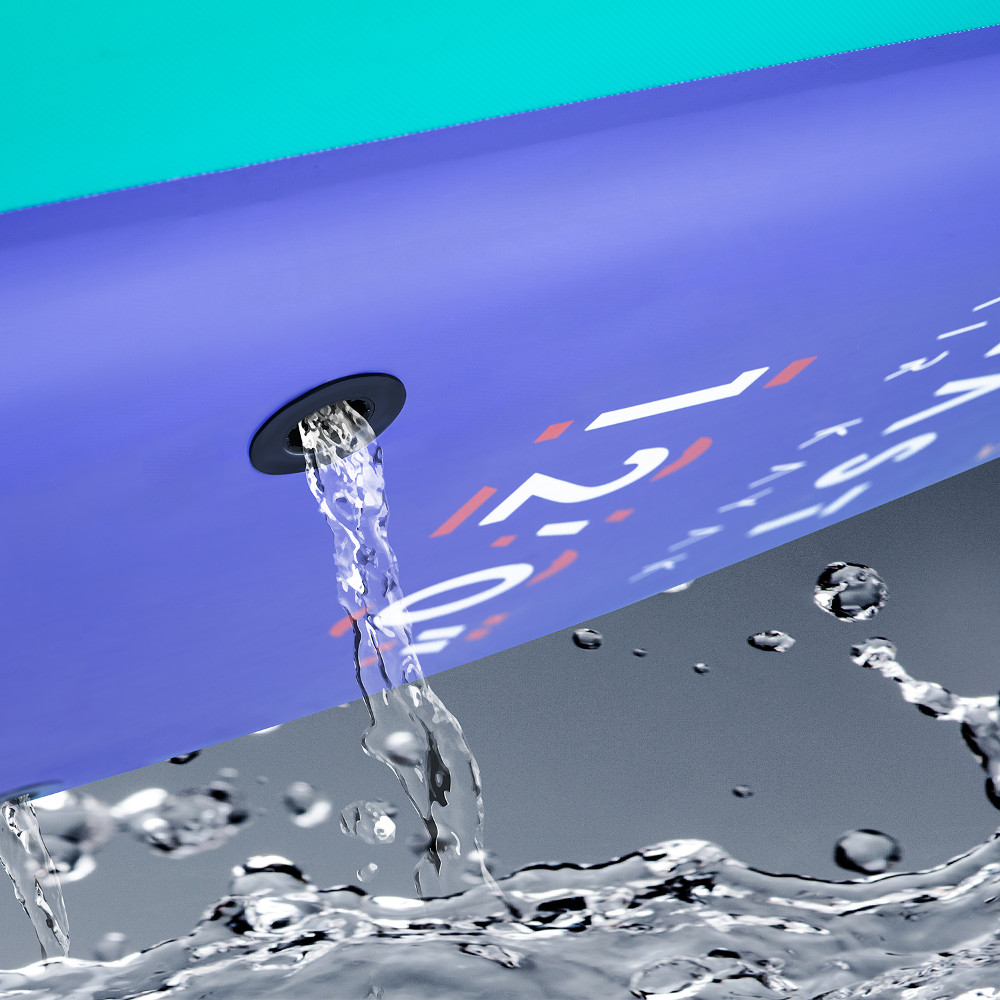 Nach dem Aufblasen ist die Konstruktion stark und hält ihre Form perfekt. Zusätzlich ist der untere Teil mit 2 verschließbaren Öffnungen zum Ablassen von eingedrungenem Wasser ausgestattet.