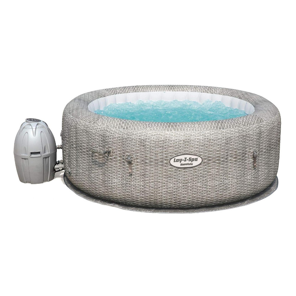 Genießen Sie ein warmes Schaumbad, ganz bequem von zu Hause aus! Mit dem aufblasbaren Whirlpool Bestway Lay-Z Spa Honolulu können Sie jeden Tag die gleiche Entspannung genießen wie im luxuriösesten Urlaub. Er ist mit 140 AirJet-Luftdüsen, einer Heizung von bis zu 40°C und einem digitalen Display ausgestattet, auf dem Sie alle Parameter Ihres Spas einstellen können. Dann brauchen Sie nur noch in das sprudelnde Wasser einzutauchen und sich zu entspannen.