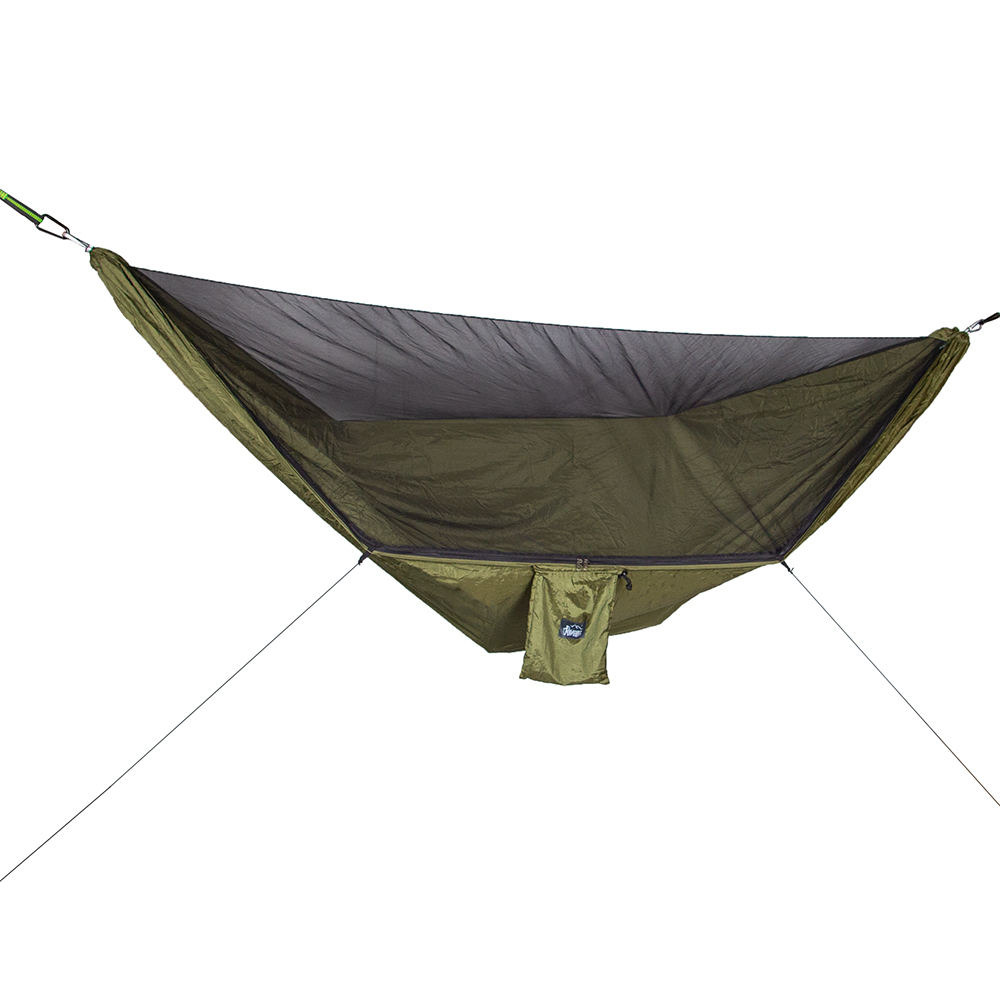 Sie möchten Ihr Bett unter freiem Himmel machen, wollen sich aber nicht blutrünstigen Insekten ausliefern? Dann löst die inSPORTline Traveller HMO Hängematte mit Moskitonetz Ihr Problem spielerisch! Es ist mit einem Moskitonetz ausgestattet, das die gesamte obere Oberfläche der Struktur bedeckt. Das Moskitonetz schließt mit einem doppelseitigen Reißverschluss, sodass Sie es nach Bedarf anordnen können.