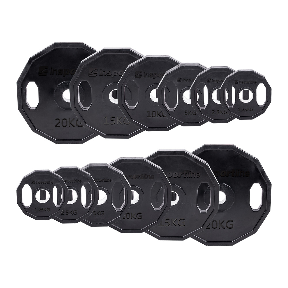 Ein praktischer Satz gummierter Stahlscheiben für Olympiaschäfte! Dank der praktischen Griffe können Sie sie auch als separate Gewichte verwenden. mehr