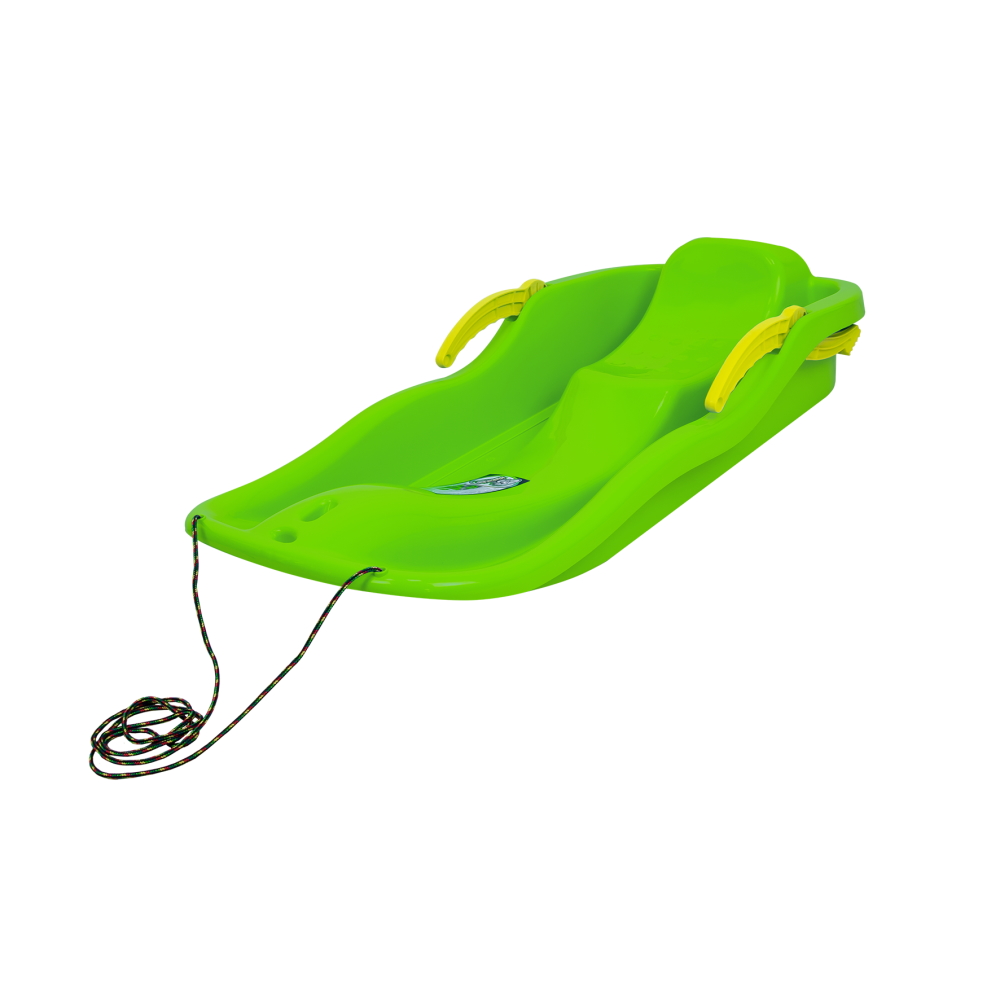 Klassischer Kunststoffbob mit zwei Bremsen und bequemem Sitz. mehr