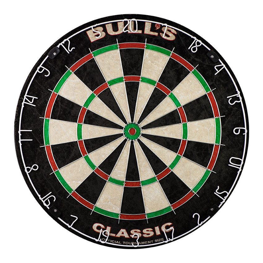Das Bull's Classic ist eine Freizeit-Dartscheibe aus Sisal mit einem runden Drahtprofil, das sich optimal für ein ungestörtes Spiel eignet! Da sie aus hochwertigem Sisal gefertigt ist, zeichnet sie sich durch eine hohe Faserdichte aus, die einen festen Halt der Metallpfeilspitze in der Scheibe garantiert. Der Rand kann gedreht werden, so dass jeder Teil der Zielscheibe gleichmäßig abgenutzt wird. Ein Montageset für die Wandbefestigung ist ebenfalls enthalten.
