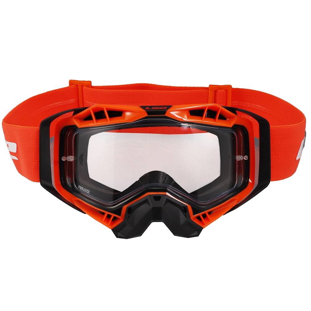 Die Motocross-Brille LS2 Aura Black HV Orange Clear Lens verfügt über erstklassige Funktionen, die normalerweise nur erstklassigen Skibrillen vorbehalten sind, wie z -Offs und ein Pinlock®-Einsatz, der das Beschlagen der Scheibe verhindert. Der dreilagige Formschaumstoff dichtet ab und leitet Schweiß ab.