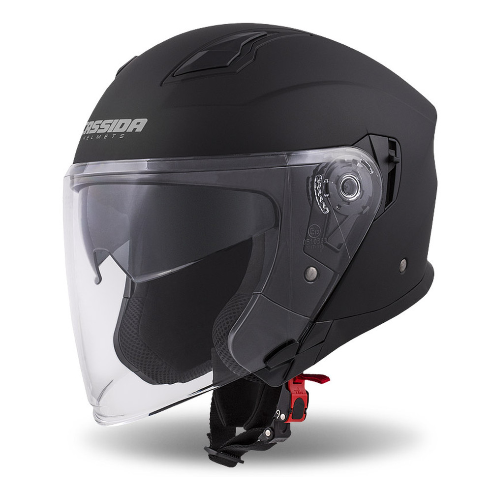 Der Motorradhelm Cassida Jet Tech eignet sich perfekt für den Stadtverkehr und ist für Mopeds, Roller und Chopper geeignet. Die anatomisch geformte Schale aus Polycarbonat bietet maximale Schlagfestigkeit und hervorragende Hitzebeständigkeit. Dieser Helm verfügt außerdem über ein langes Antibeschlag-Visier und eine Sonnenblende.