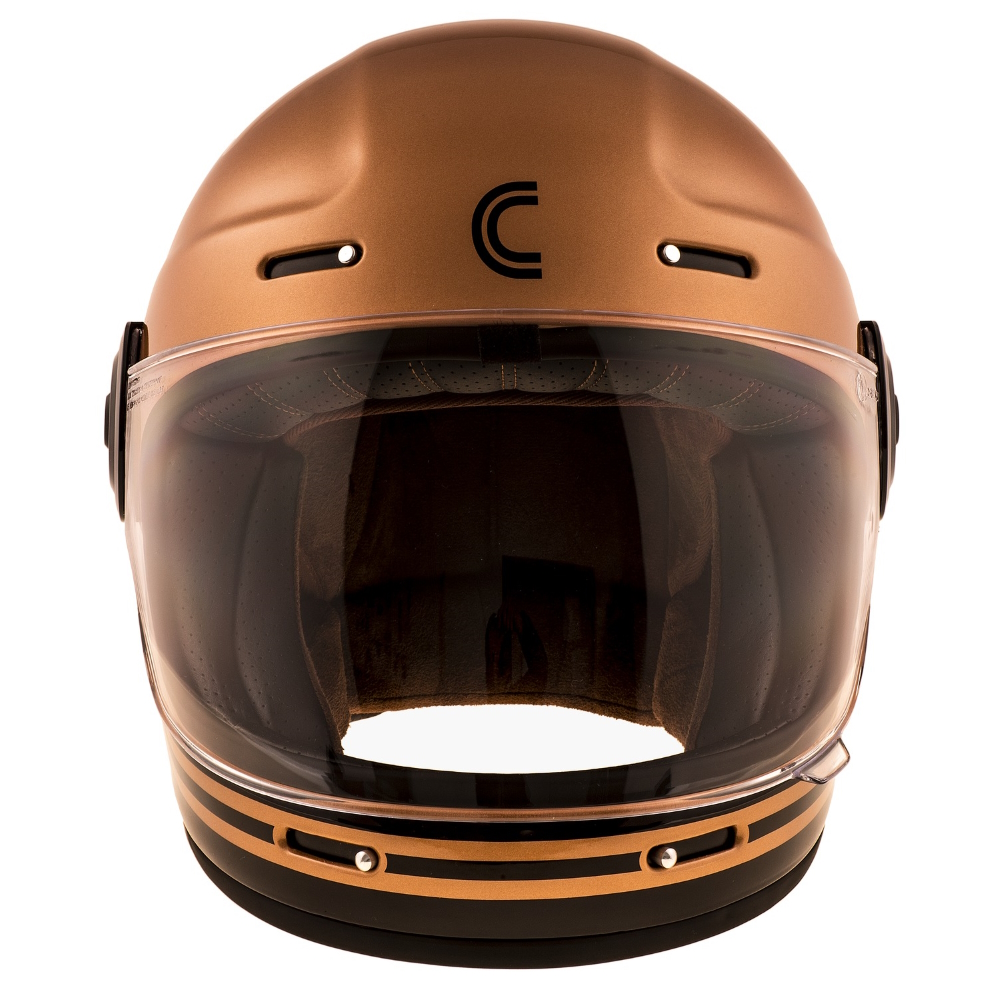 Der Cassida Fiber-Motorradhelm ist ein Integralhelm mit einer Glasfaserschale, den Sicherheitsstandards moderner Helme und einem Design, das sich an Benutzer von Vintage-, „Neo-Retro“- und modernen klassischen Motorrädern richtet. Besonders erfreulich ist der große Blickwinkel, der fast mit offenen Helmen vergleichbar ist. Auch die Befestigung erfolgt klassisch – mit doppelten DD-Ringen.