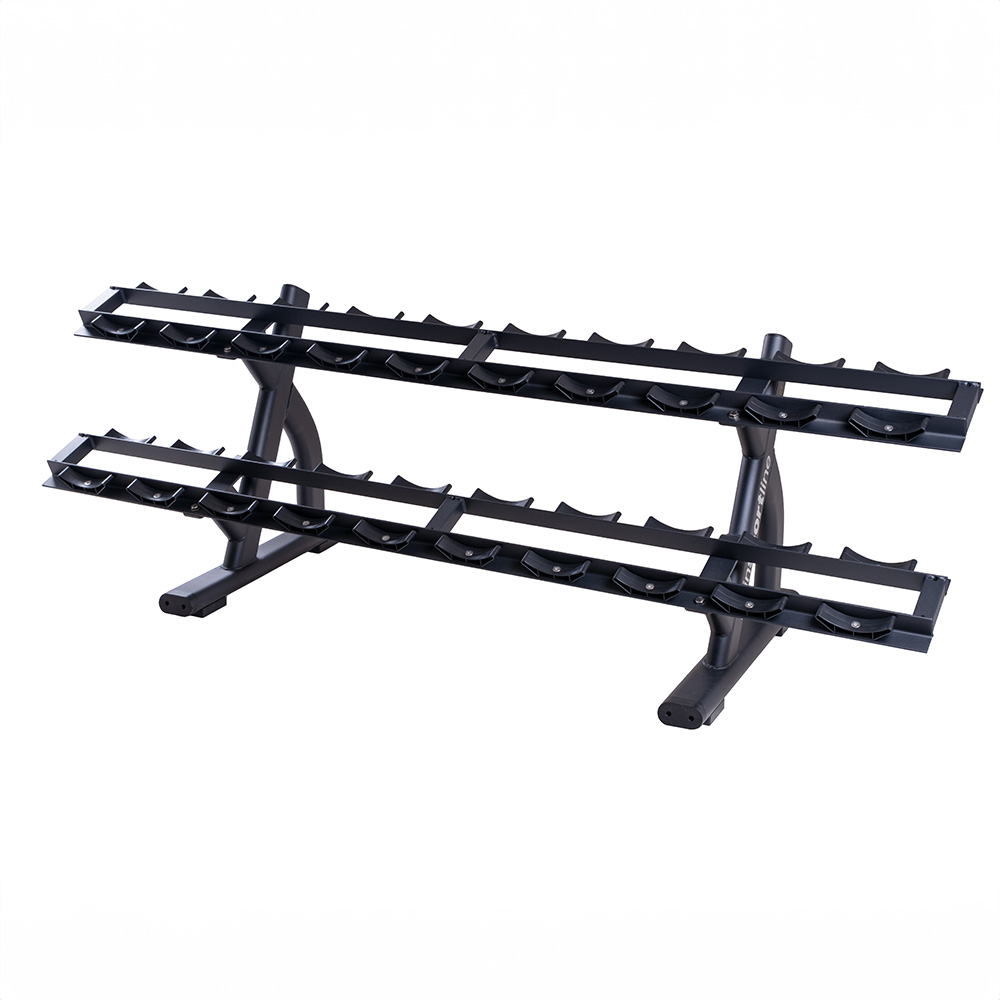 Stabile und niedrig angesetzte Ablage für 20 Einhandhanteln, geeignet für alle Profi-Fitnessstudios und -Studios! mehr