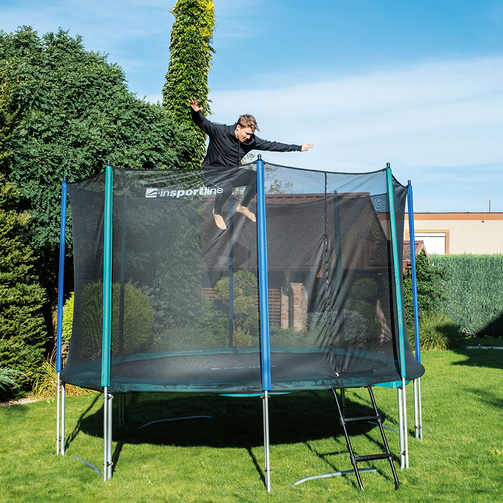Korrosionsfreie, verzinkte Super-High-Qualitätsfedern, eine extrem haltbare Heavy-Duty-Konstruktion und eine in den USA entwickelte Action Impact-Oberfläche mit erhöhtem Rückprall sind Merkmale, die das inSPORTline 366 cm Trampolin zur wahren Elite zählen lassen. Das inSPORTline 366 cm Trampolin ist für den Außeneinsatz geeignet. Zu diesem Set gehört auch ein Sicherheitsnetz mit einer Struktur, die eine Aufprallfläche gegen das Herunterfallen bietet, sowie eine Treppe für einen einfachen Einstieg in das Trampolin.