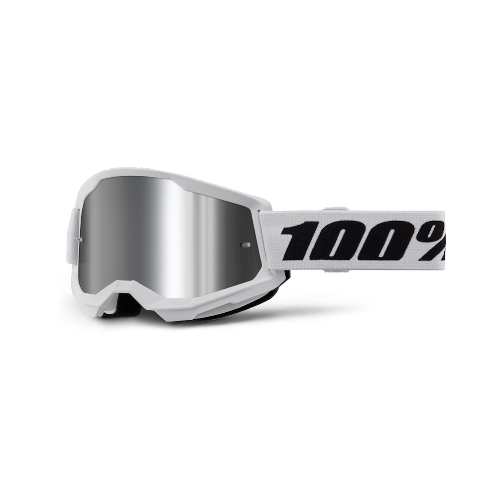 Motocrossbrille 100% Strata 2 New Mirror - Bílé, stříbrné plexi