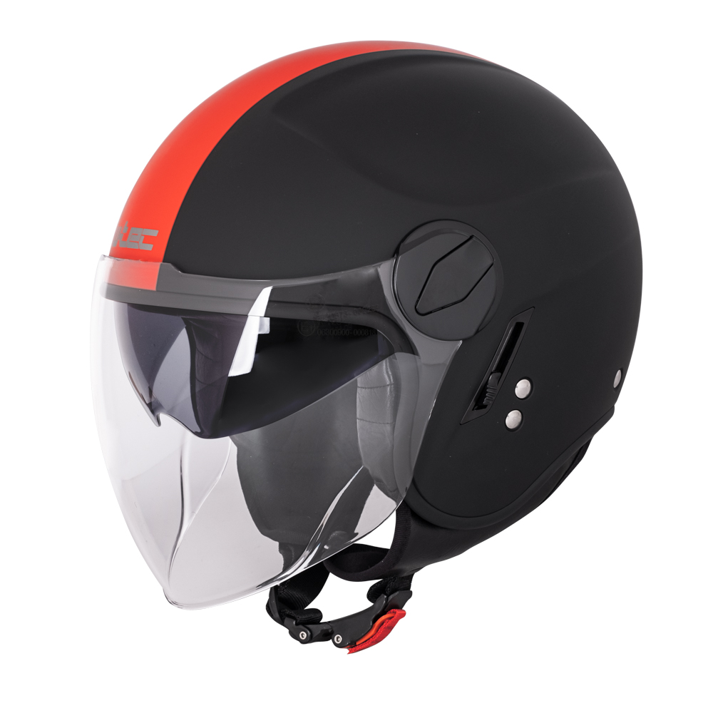 Der W-TEC Vernante Motorradhelm ist ein offener Helm, der für das Fahren von Motorrollern und langsameren Tourenmotorrädern konzipiert wurde und vor allem in und um die Stadt ideal ist. Er verfügt über ein breites , klappbares Visier, das durch eine selbst ausfahrende Sonnenblende ergänzt wird, die während der Fahrt vor grellem Sonnenlicht schützt. Diese lässt sich bequem von außen über einen Hebel an der Seite des Helms bedienen.