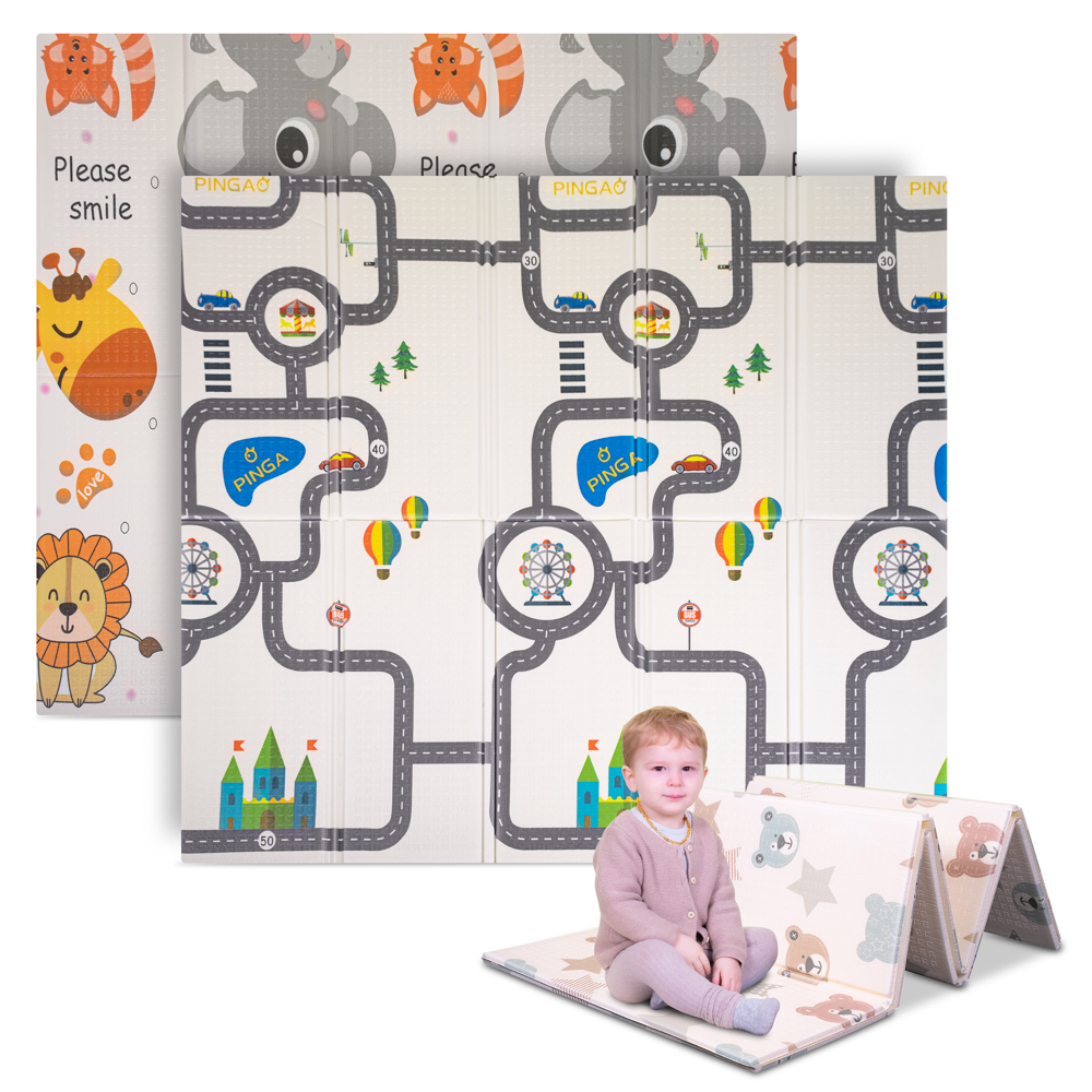 Faltbare Kindermatte inSPORTline Michlino 150x180x1,2 cm - Safari/Silnice Sonderangebot
